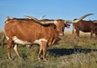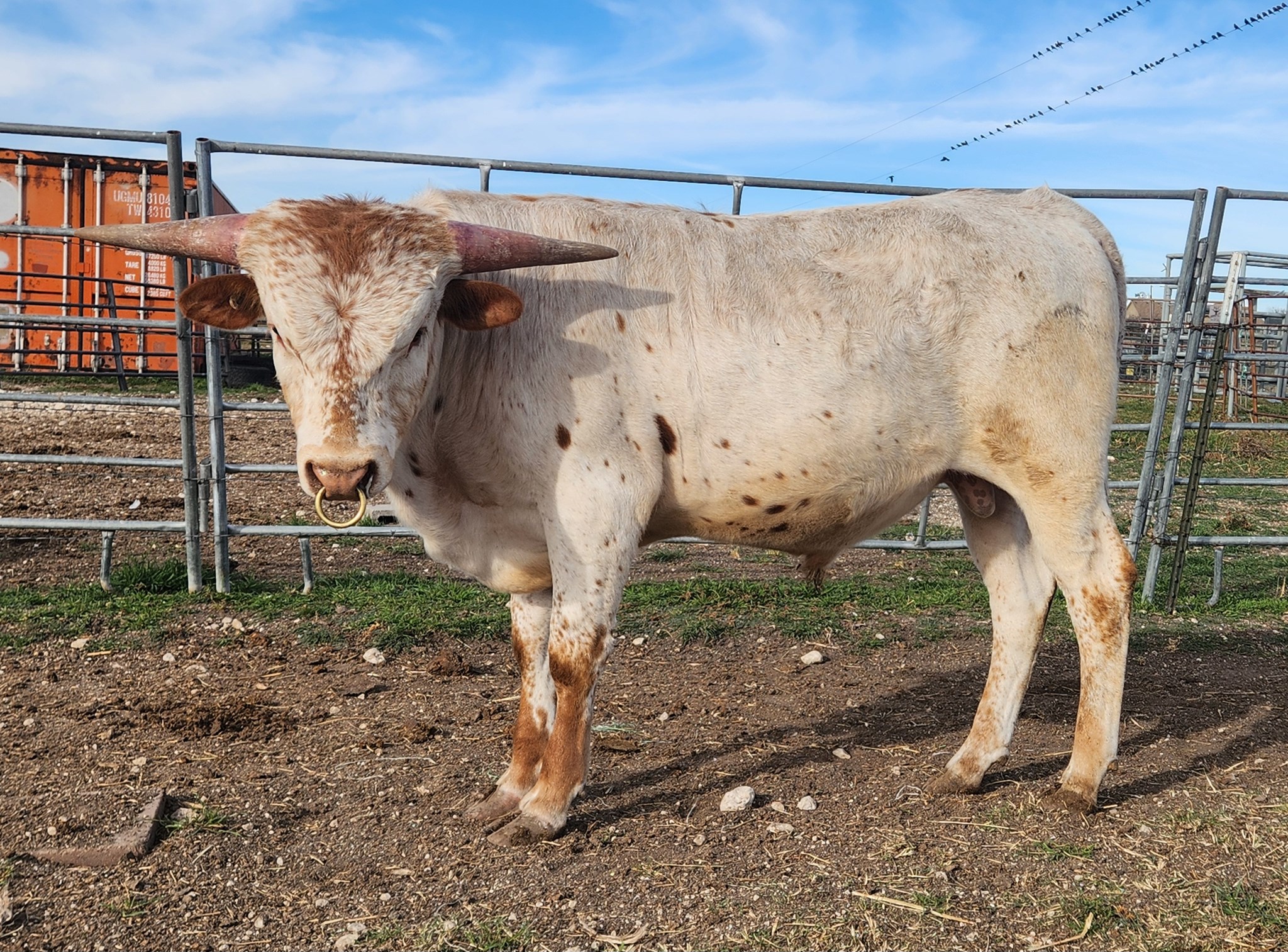 Thick and tall, his young bull has everything going for him. His red roan coloring is coming in more every day while his conformation is solid. His horns are cranking back with hooks on the end. Out of G&L Enchanted Evening, a Drag Iron Daughter, he is gentle, calm, and loving of attention. He is exactly what you want to reproduce in your herd. A full brother to G&L Mescalero, we think he will surpass all expectations. Bolero is simply a dream boat!