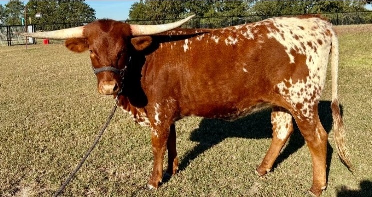 This is a full-bodied female loaded with potential. Daphne has both horn and beef genetics that will take your herd in any direction you choose. She is conformationally correct, tall, colorful, a loaded pedigree, and best of all sweet. She has it all! She has been hand raised and is easy to work. She has been on halter and was a show heifer until life changed our plans. This young heifer is the result of hand selected breeding to be the most complete, total package femal you can find.