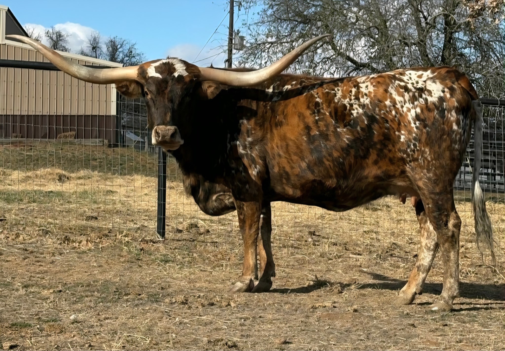 Big-bodied and colorful, this fine lady is a standout in any surrounding. She produces beautiful, solid calves and is an excellent mother. Her calves are solid and correct. Though we have never shown her, Omega was once on halter and made the show circuit. She is wonderfully correct, an easy producer, and a great choice for any program!